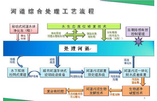 我司將根據黑臭水體成因,參考水體周圍環境特征、水文條件等,訂制一攬子處理方案,長效解決黑臭水體問題。遵循“外源減排、內源清淤、水質凈化、清水補給、生態恢復”的原則。采用淤泥清理+水體凈化+工程菌培養+生態治理+泊岸治理的路線。 清淤與凈化船 風光互補天然能源曝氣系統 生態浮島 泊岸生態修復